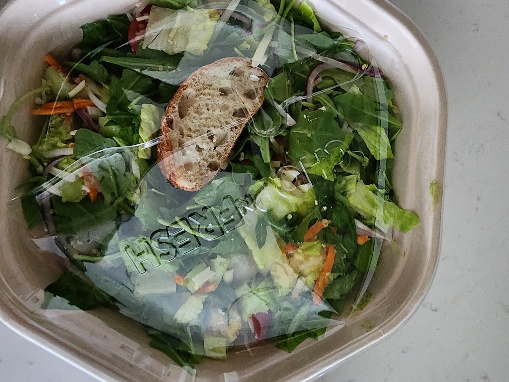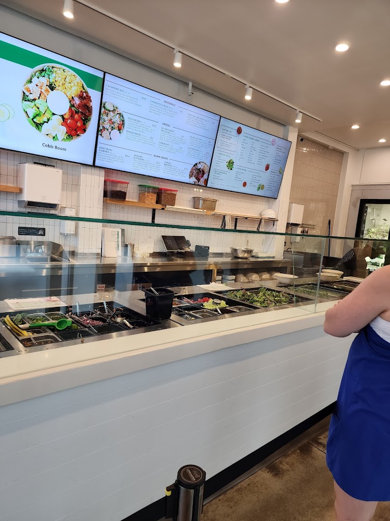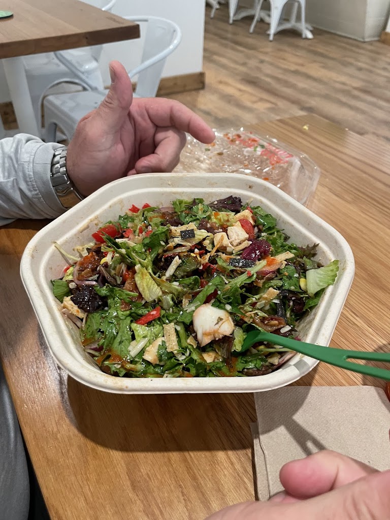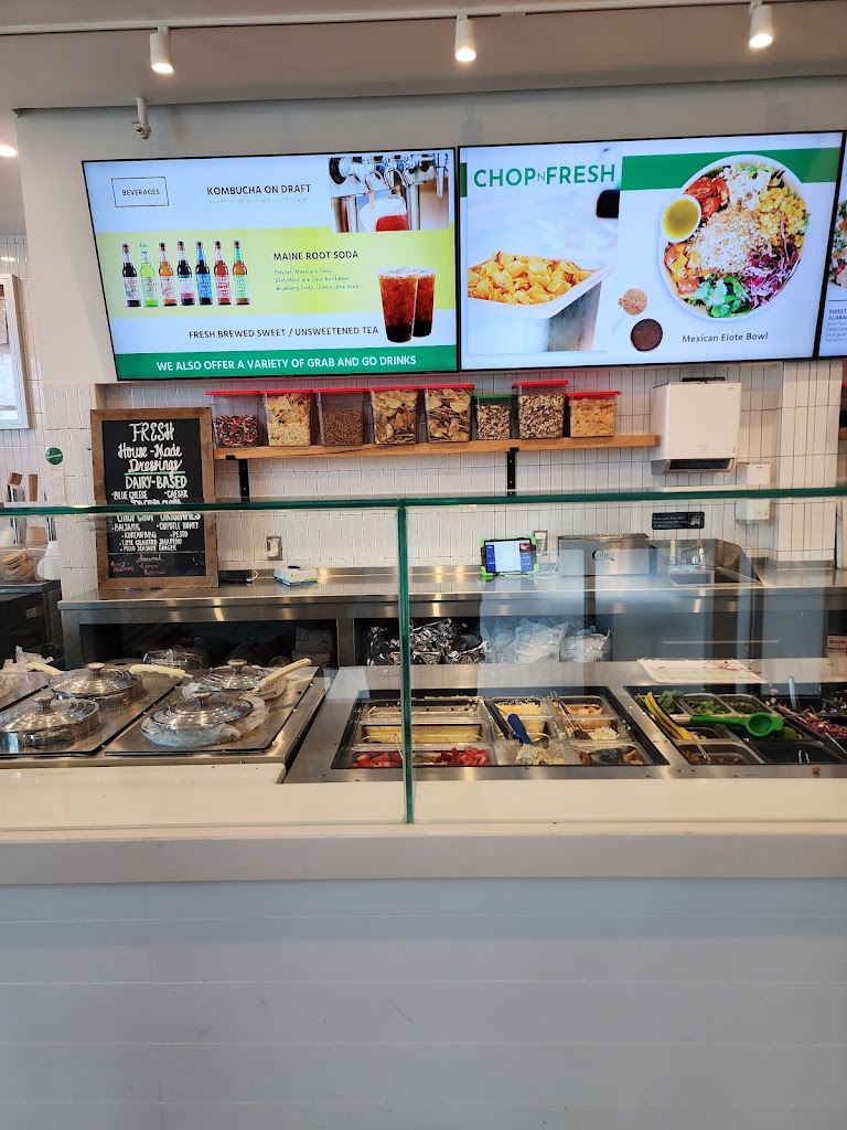 Also called Chop Chop since that is the name I was given when recommended this place. The salads are very filling and the ingredients are tasty and fresh. The employees were helpful while I was ordering and they let you do equal priced swap out of ingredients for any of their named salads. Everything is given in a to-go container so no worries about having to ask for one. Bit pricey, but so is everything now so at least it is good for the price.