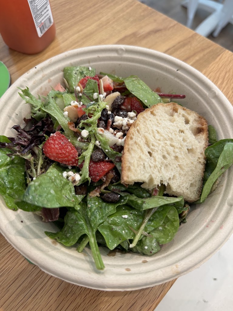 The fresh spinach salad was very tasty, healthy and just really good. We chose our own extras to put in it, Craisins, chicken, roasted peppers, roasted sweet potatoes, cucumbers, etc . Definitely something to enjoy. Dietary restrictions: Great health food for a diabetic or someone with health issues or just someone that wants to eat healthy.