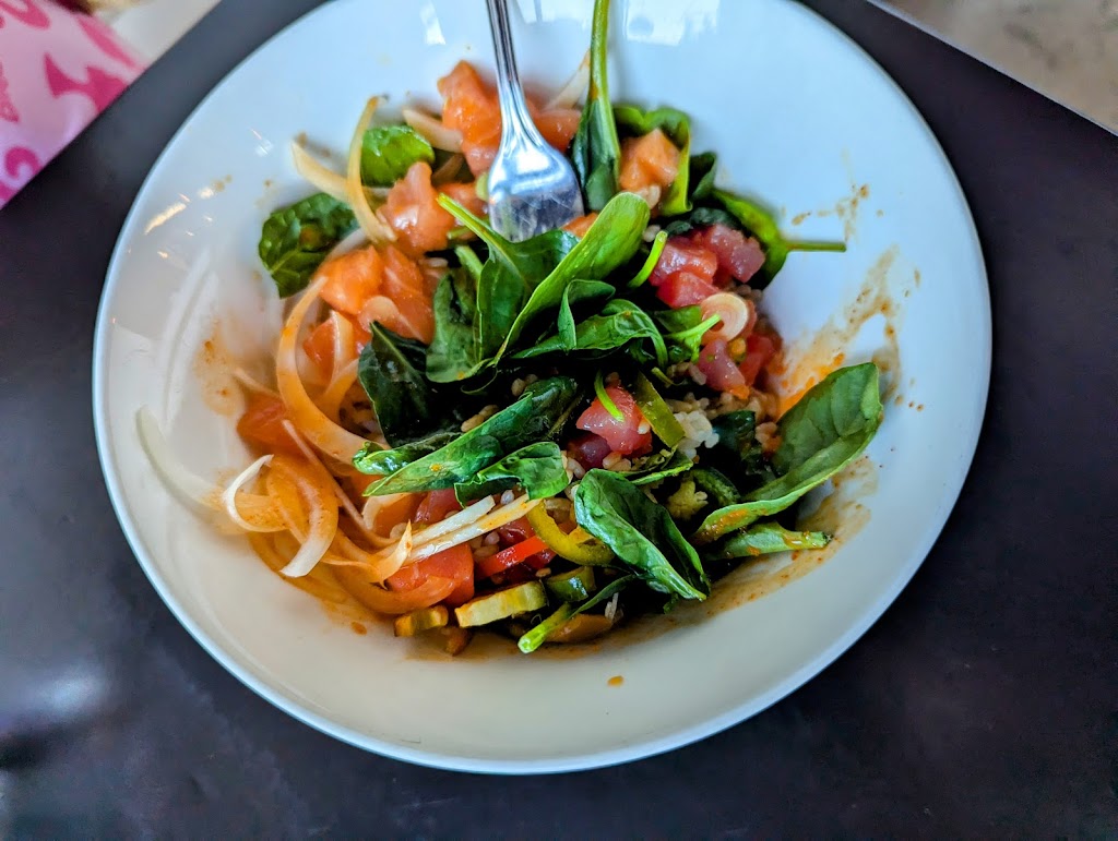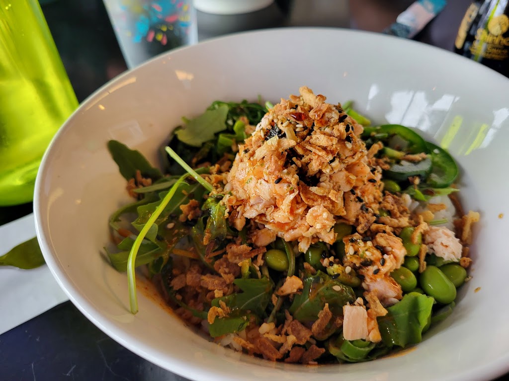First time. I wanted a Poke bowl, but I was not familiar with the menu. I told the server what I like. The server told me I was going to like the Mango Albacore Bowl. He switched Albacore for salmon (good). He kept throwing things without asking. I didnt like the spinach in it. It wasnt as tasty for my craving.