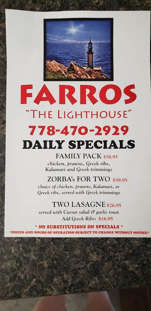 Whether you're craving traditional Indian favorites like butter chicken and pakoras, authentic Greek specialties like souvlaki and gyros, or delicious pizzas ranging from classic to innovative fusion creations like our Paneer Pizza, we’ve got something to delight every palate. Our moderate pricing and welcoming atmosphere make Farros Pizza & Greek the perfect spot for family dinners, casual meetups, or special celebrations. Look for the iconic lighthouse logo and experience the flavors of three culinary worlds in one unforgettable meal. Visit us today or place your order online to enjoy the best of Indian, Greek, and Italian cuisine in Kamloops!