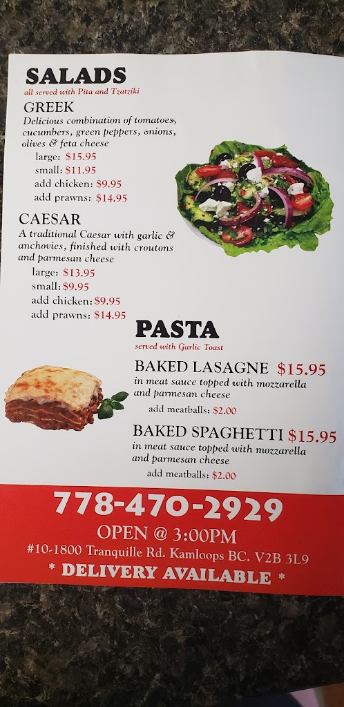 They make the best Greek Salad in the whole of Kamloops. The salad is made to order and everything is fresh and crunchy not not soggy or sitting in dressing all day.