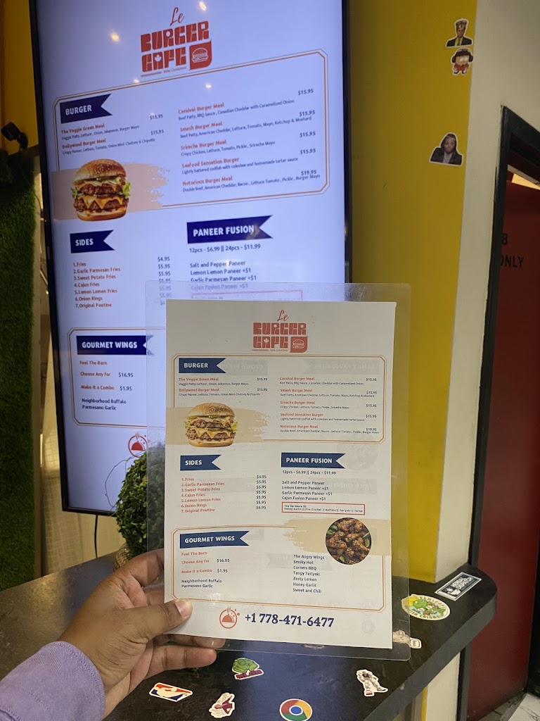 Location: 340 Victoria St, Downtown Kamloops Place name: Le Burger Cafe Item name: Bollywood Burger Meal with Garlic Parmesan Fries & Drink The price of the item is 17.70 Including Taxes and this burger is really great option for the vegetarian people and the Paneer that is used they import it from Alberta and the fries were good too. The store timing is 6pm to 2.30am everyday and do visit this place and let me know. They also have free Delivery on Skip , Door-dash and Uber Eats. If you use my Instagram handle as a promo till 10th July 2024 you will get 15 percent off.