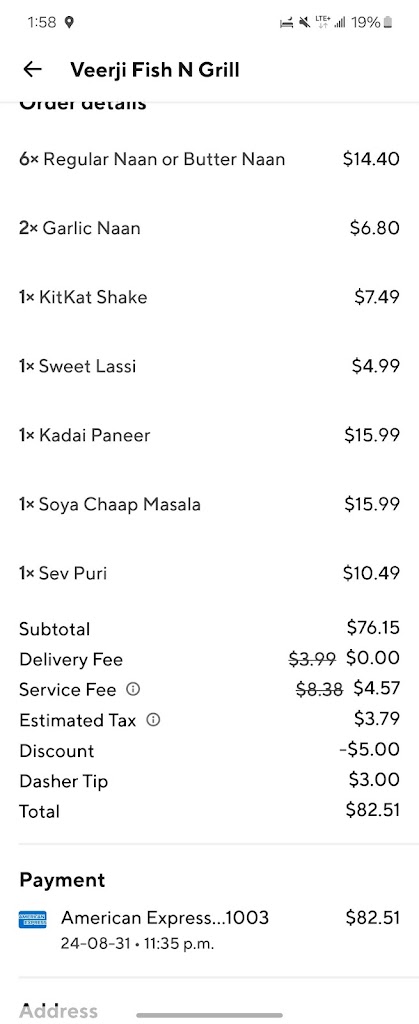 I recently ordered from Veerji Fish N Grill, hoping to enjoy a special meal with my family, but the experience was nothing short of a disaster. First, we found a hair in the Sev Puri, which was beyond disgusting and completely ruined our appetite. The KitKat Shake was a watery mess, tasting more like diluted cocoa powder than the rich, creamy shake we expected. The naan was stale, clearly made with old dough, and the food was overwhelmingly spicy with no balance—there was no salt, just an overpowering amount of chili that made the dishes practically inedible. To top it all off, despite requesting utensils and condiments, none were included, making the situation even worse. We were so disappointed that we ended up ordering food from somewhere else, costing us extra money. This was supposed to be a special occasion, but it turned out to be a complete waste. I cannot recommend this place based on our experience.
