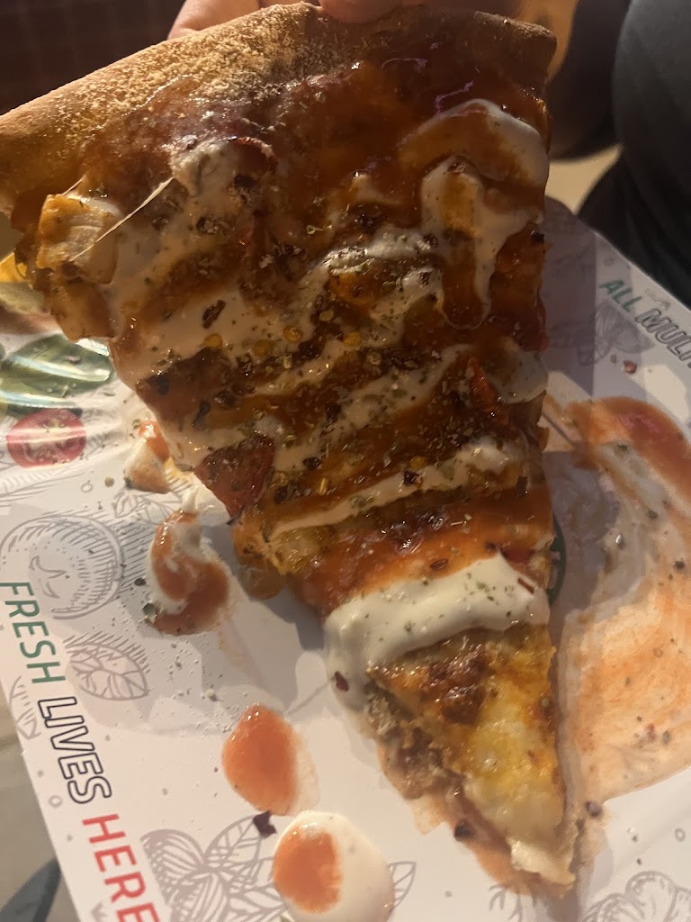 We went to fresh slice pizza and ordered food but it was so bad that I never eat my life . Threw the pizza in the garbage just waste money..