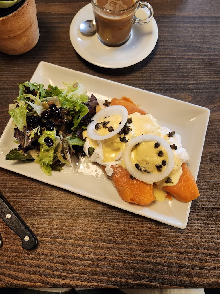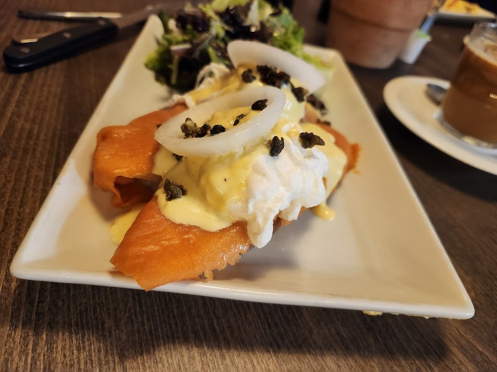 Smoked salmon eggs Benedict and the homemade bacon were to die for. Excellent brunch