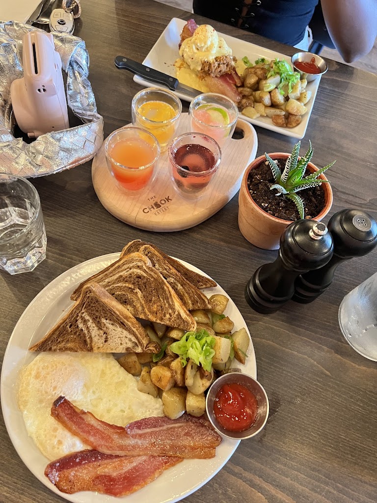 The restaurant is very cute and clean. The service was not great for our small group. A couple mishaps on our servers end, and she was not that friendly from the moment we walked in. The food was pretty mediocre and the potatoes, pork and Hollandaise sauce were quite bland. Although, the mimosas were good.