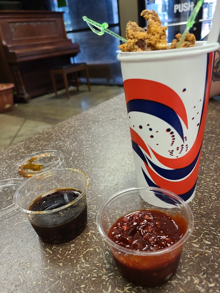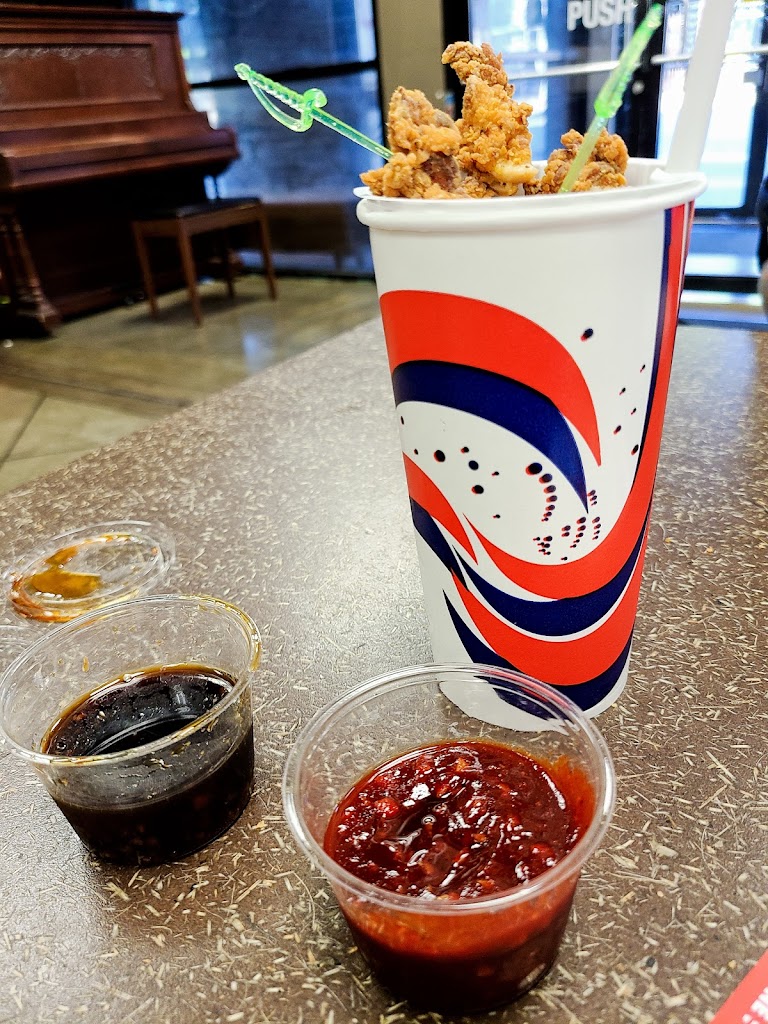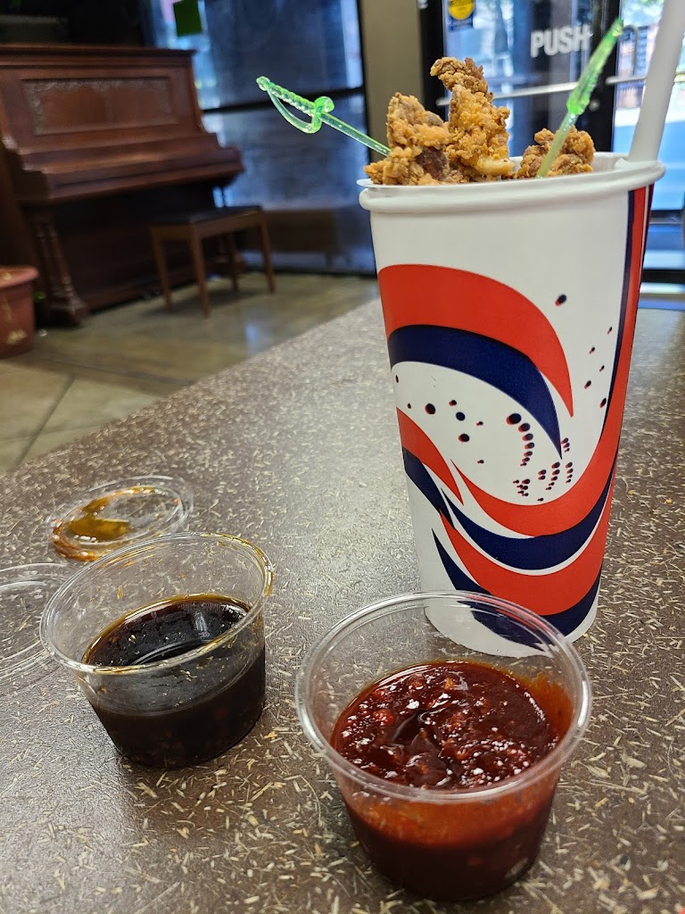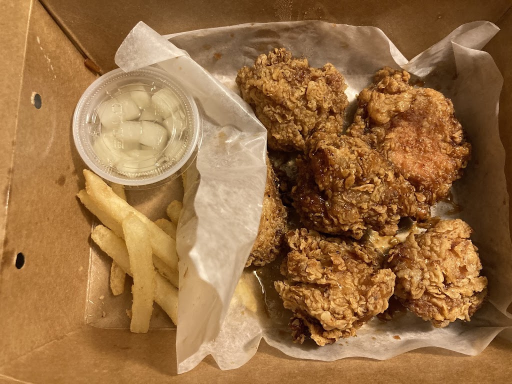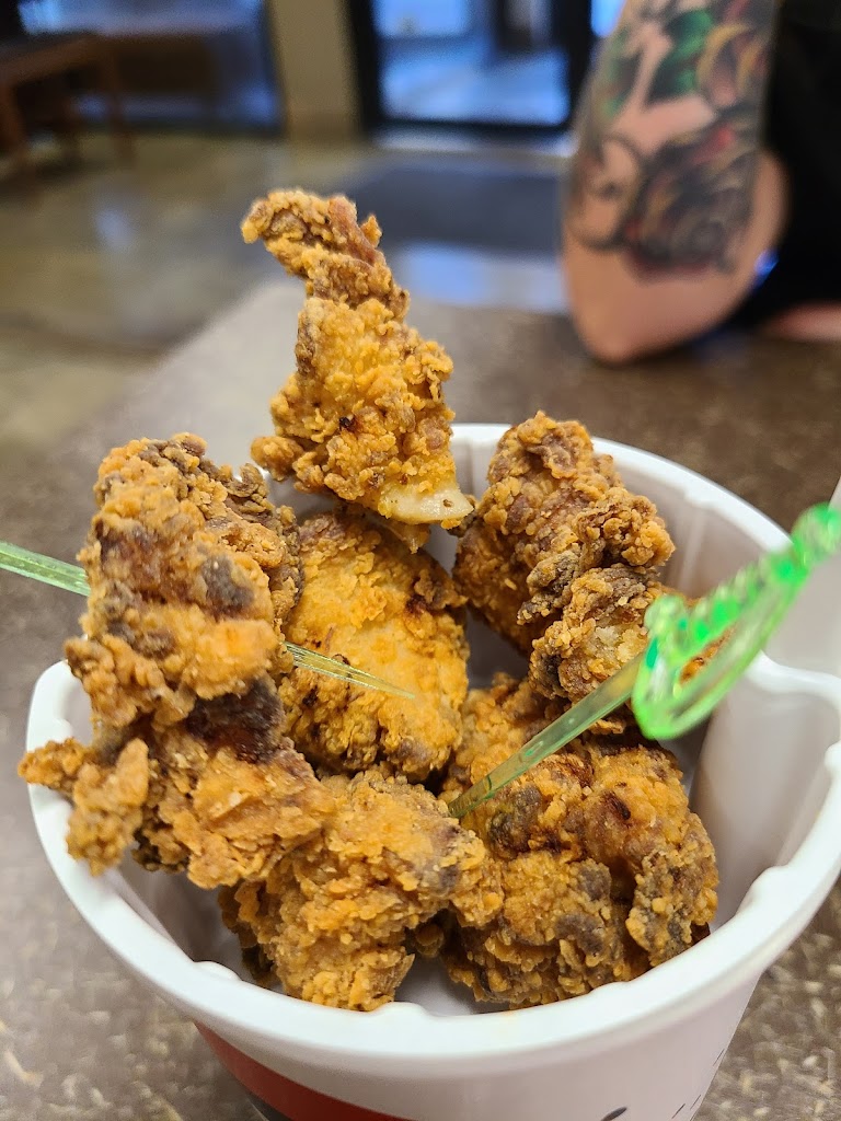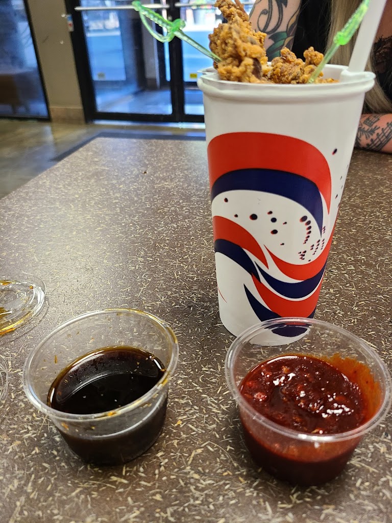 Amazing fried chicken. Like Lucky's but better batter IMO. The dipping sauces.. soy/garlic and sweet/spicy chili. They were FANTASTIC. The batter is light, golden and delicious. Great packaging as well. Will be back for sure.
