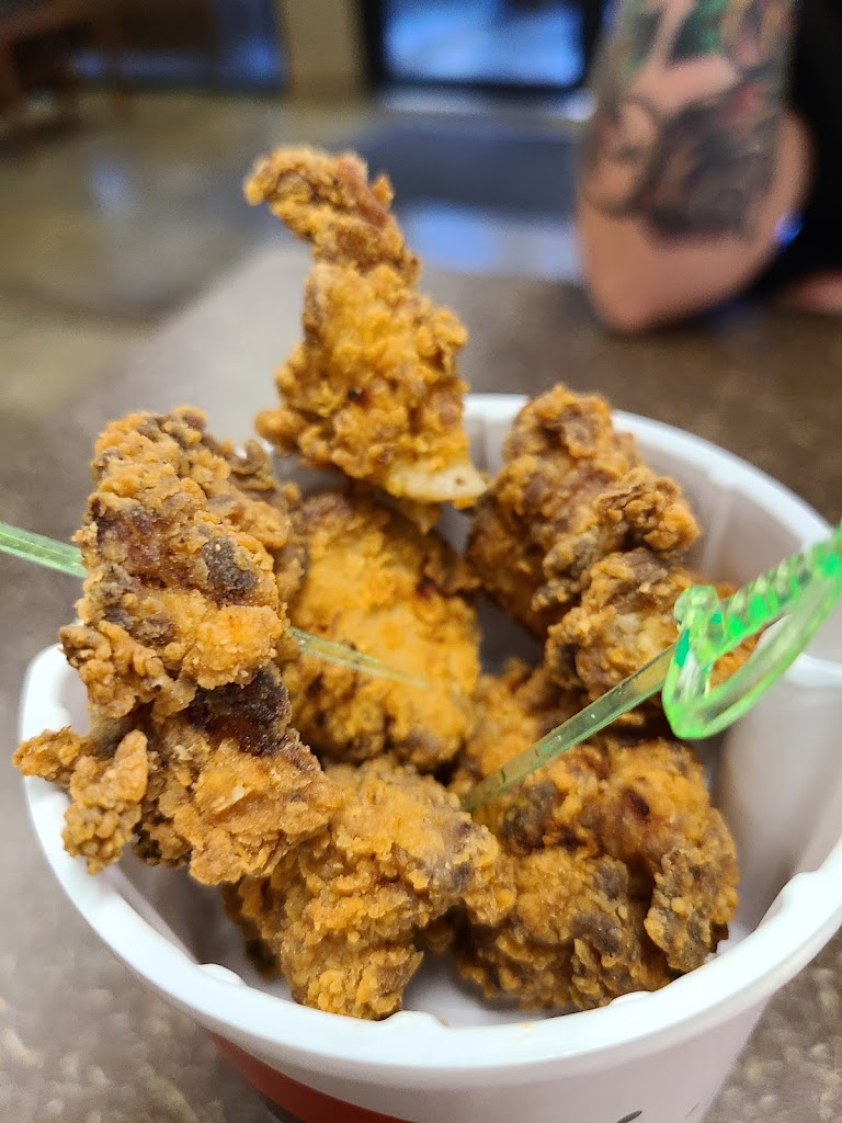 I can t stop talking about this life changing fried chicken. I ve been raving about it for two days now. We had the creamy onion and honey butter garlic, they did not disappoint. 10/10. Would recommend to a friend.