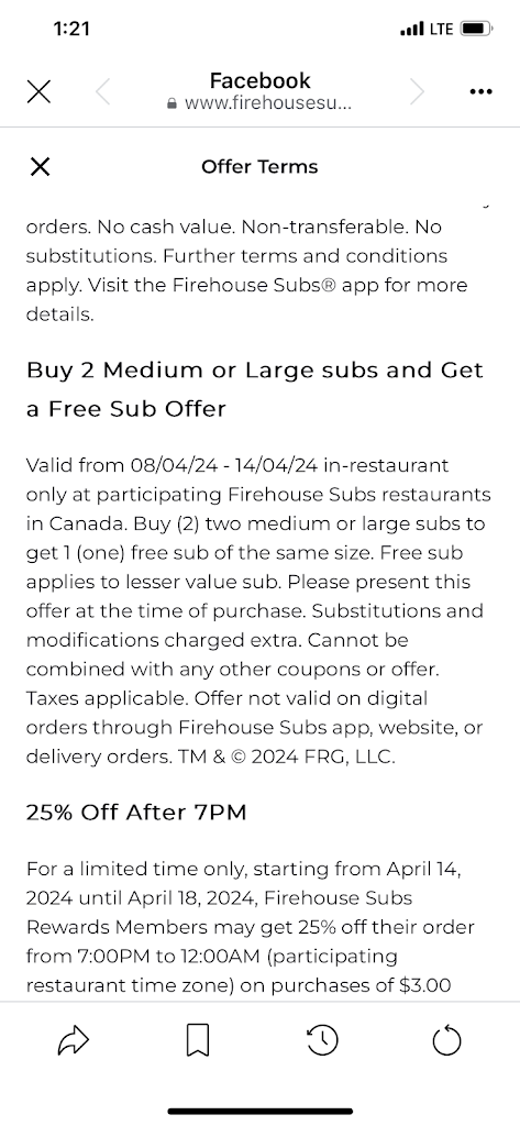 Today, I went to Firehouse Subs to pick up lunch for my staff. I've been doing this for the past few days with no issues at other locations. However, when I went to the Connecticut location and ordered three large subs, I was informed that the location does not honour what the company's website says. Even if you order three large subs, you will only receive three medium subs. This was disappointing, as the website clearly states otherwise. When I asked the staff about the discrepancy, they were unhelpful and did not offer any explanation. Upon receiving my order, I saw that there was a medium sub in place of one of the large subs that I had ordered. Despite what the receipt said, the policy at this location is clearly not in line with what the company advertises. I will not be returning to this location again.