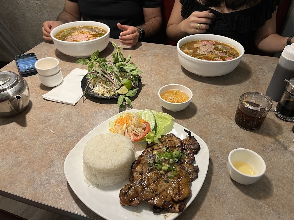 They have really quick service and probably the best cafe sua da, in my opinion. The rolls and big, and hefty, and I like that I can request my bun bo hue to not be too spicy. They have a lot of menu items, so it s a great place to keep coming back to try new food.