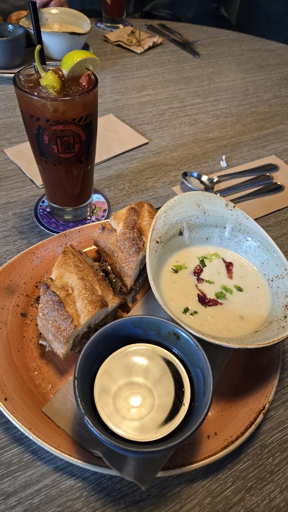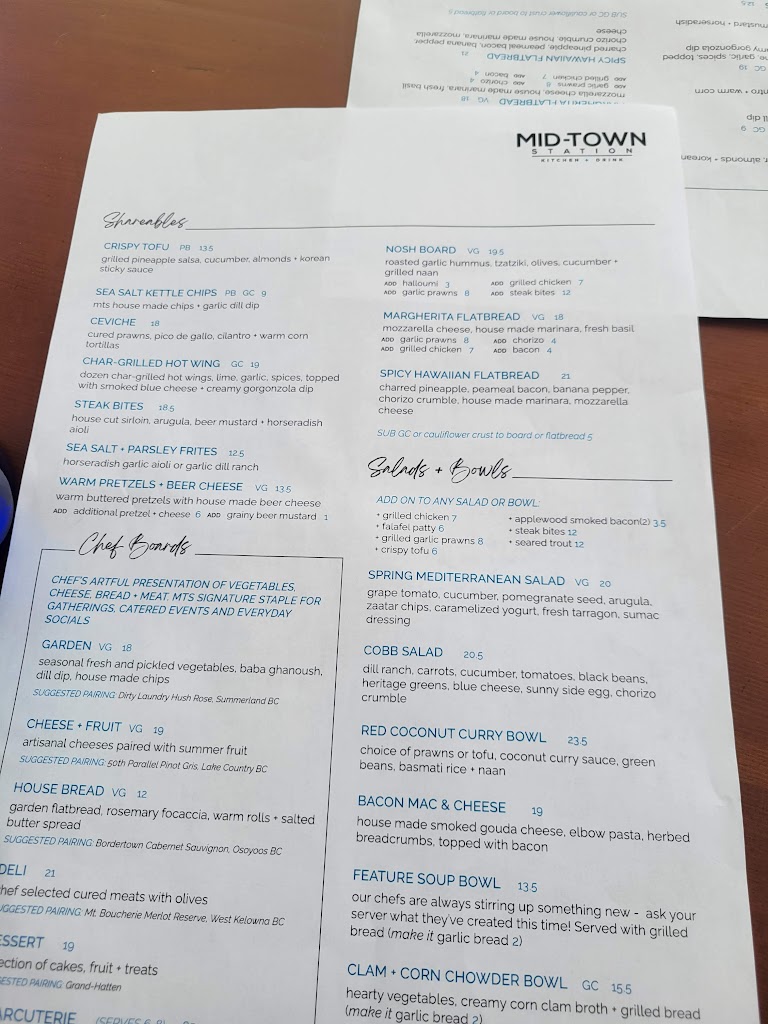 I had an incredible experience at Mid-Town Station Kitchen + Drink in Kelowna, BC. This lively restaurant exudes a positive vibe and is conveniently close to downtown, yet pleasantly uncrowded. The ample free parking around was a plus. The decor is tastefully done, creating a pleasant atmosphere. As for the food, it was outstanding. We savored a delightful array of dishes, including the delectable oita bread and hummus, flavorful clam chowder, satisfying chicken tenders, and delightful pasta. The fruit plate added a refreshing touch to the meal, and the selection of beers and whiskey complemented the dining experience perfectly. The attentive and friendly service further enhanced our visit. I wholeheartedly recommend Mid-Town Station Kitchen + Drink to anyone seeking a fantastic dining experience in Kelowna. It's a gem worth discovering.