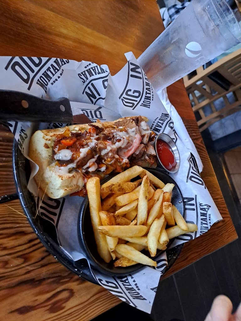Havent been to a Montanas in every a decade. Food was amazing. I had the honkin beef rib with wings, mash, coleslaw and gravy. Shout-out to Amanda for the great service. Ill definitely be back next time Im in town