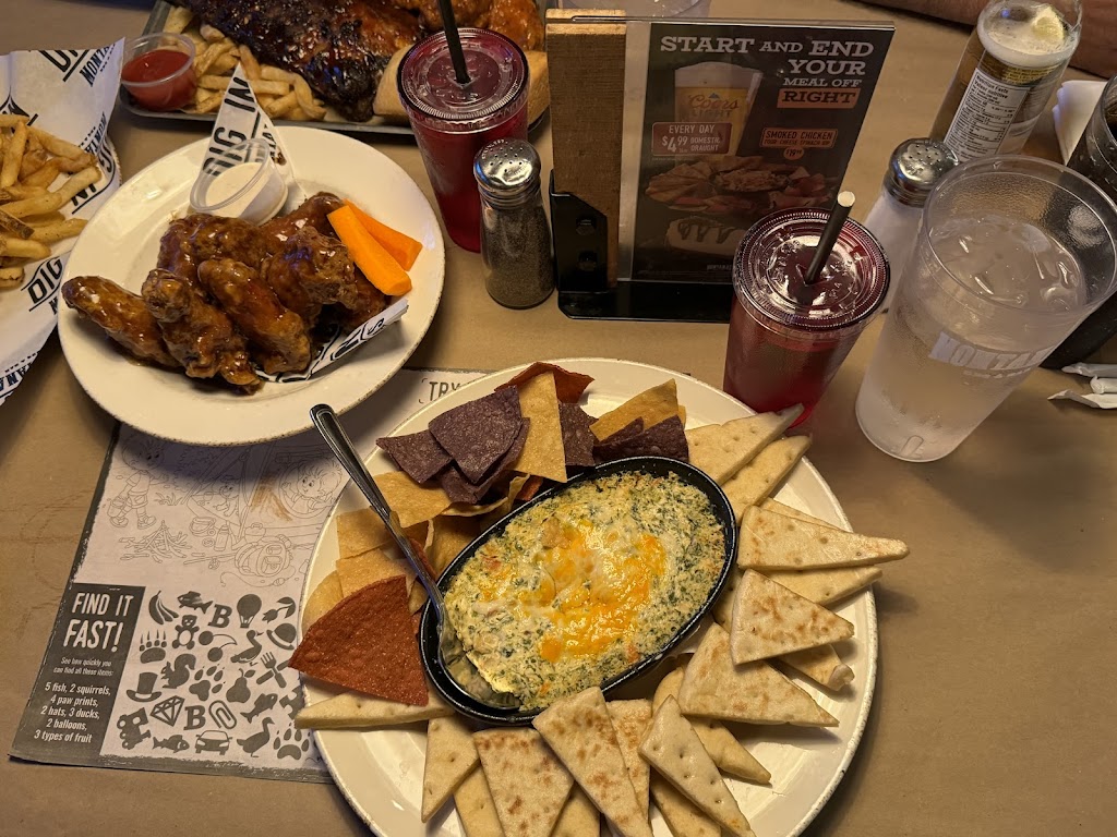 Jeremy truly loves his job - he is at the top of his game in this casual dining establishment which some people assume is just a noisy place to bring kids..we enjoyed the lobster spinach dip, the honkin beef rib and the bbq chicken fajitas which gave us leftovers for 2 days..and a couple of beers. Give this man a raise, he s very personable and attentive without hovering..we ll be back