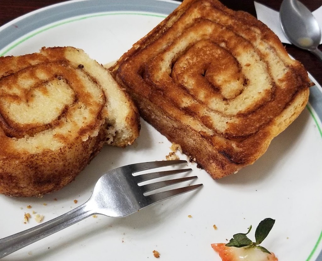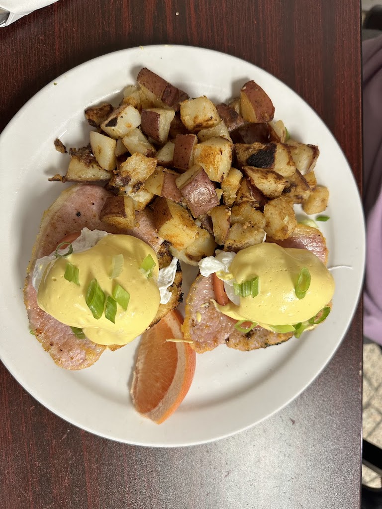 I love the traditional eggs Benedict here and the cinnamon buns! Yum!
