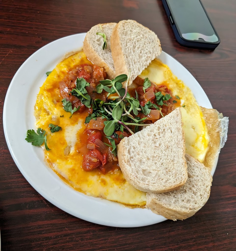 Tasty breakfast, the tomato salad was delicious. Would recommend eating here :)
