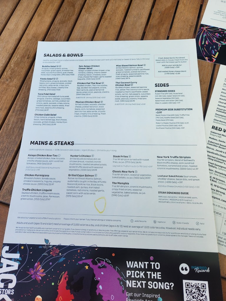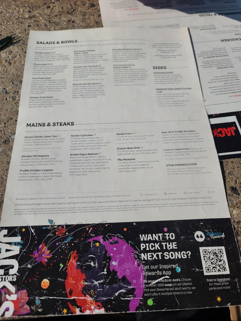 Food and atmosphere was great. Our server, Ella, was amazing. I highly recommend Jack Astors in Kingston.