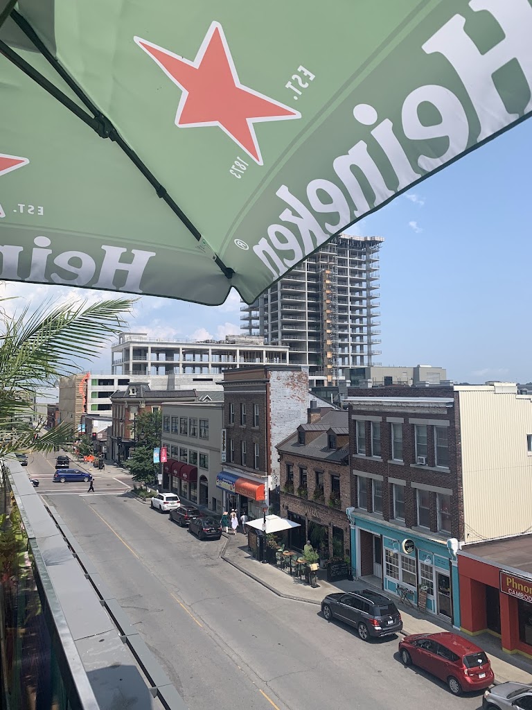 Very trendy place, very good to come to see a game on their huge whole wall TV inside the main room, and in the summer time featuring amazing roof patio upstairs! Food is good, selection of drinks is also good , so I highly recommend to plan to stop by when you are visiting Kingston downtown!
