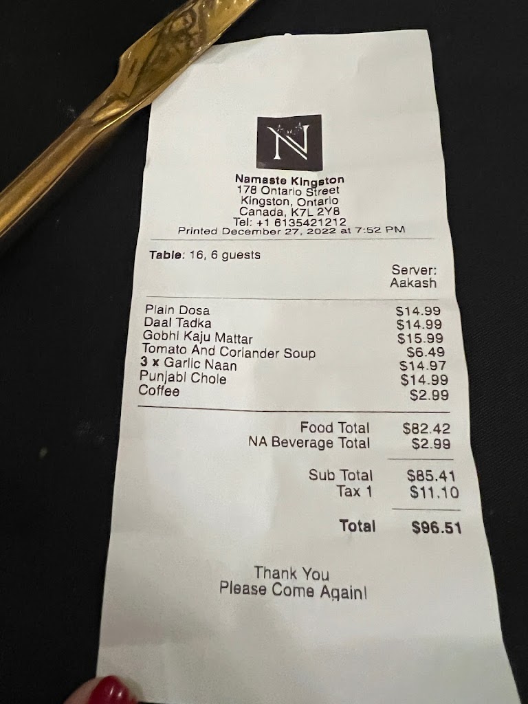 I’ve always heard good things about Namaste Kingston, but unfortunately, my recent visit left me disappointed. While the food was satisfactory, the service was another story. The owner’s son, who was handling customer interactions, was incredibly rude and lacked basic customer service skills. His demeanor was unprofessional and did not reflect well on the restaurant. It’s a shame because this behavior detracts from the hard work that’s clearly been put into building the restaurant’s reputation. I hope the management addresses this issue soon to ensure the quality of service matches the quality of their food and ambience.