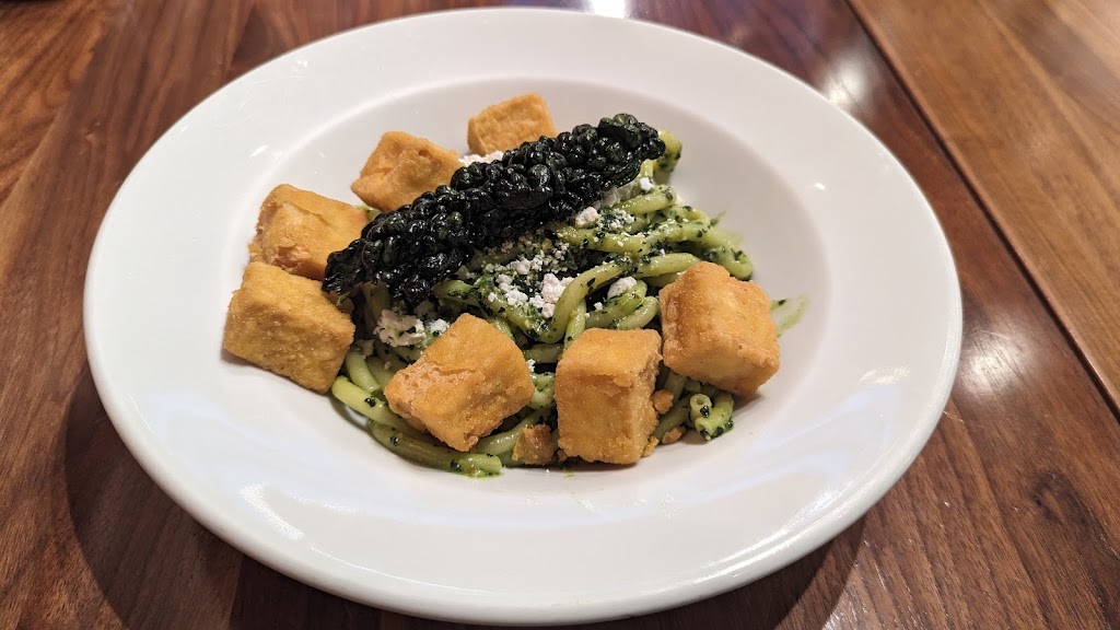 Food - I got the kale pesto with bucatini and fried tofu. The sauce was watery and bland, the pasta was overly soft. The tofu was good and the only redeeming factor. A microwave pasta meal would be faster, cheaper, and tastier. Service - ordering is done through a kiosk, you pick up your order at the counter and bus your own table. I like this style of self service. Atmosphere - good casual atmosphere. The restaurant was well lit and the table was clean. It was pretty busy but still didn't get too loud.