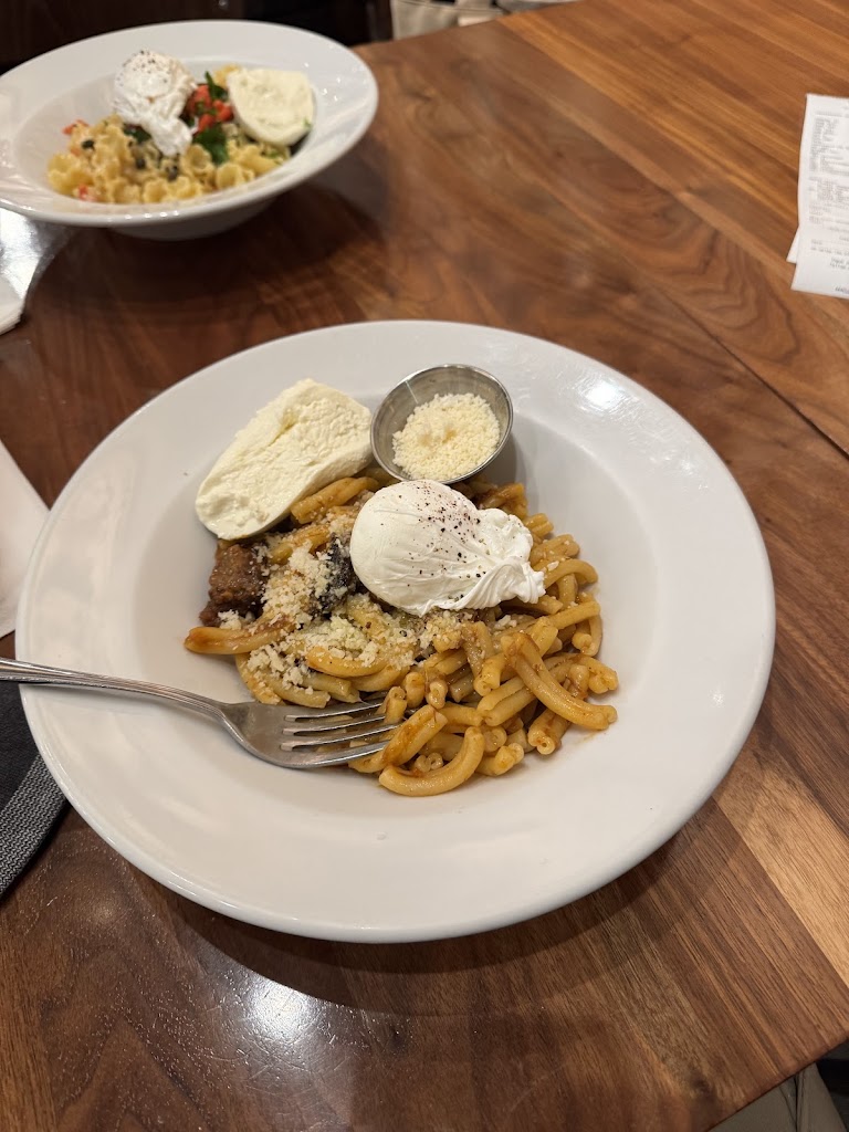 This was my first visit to Due Cucina, and my initial impression was that the restaurant has a sleek, modern design with an Italian flair. The pasta looked great but was a bit firm and greasy for my taste. I added extra cheese and egg, but the dish ended up feeling a little too salty overall.