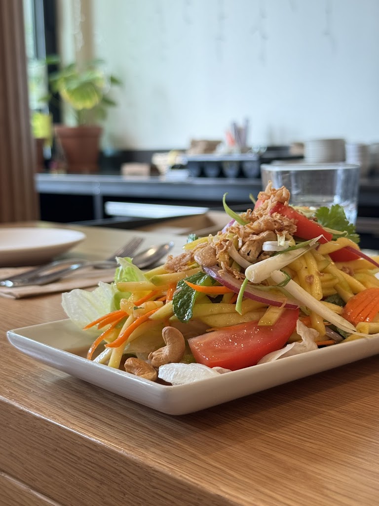 It is very flavorful and not too spicy, which for us is great. Nice staff. Its a bit pricey for a vegan meal, though, so its not the best cost benefit. The highlights are the fried tofu with peanuts sauce and the mango delight (dessert).