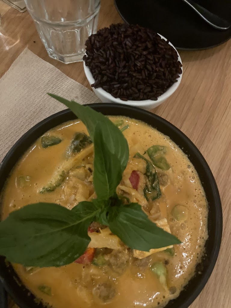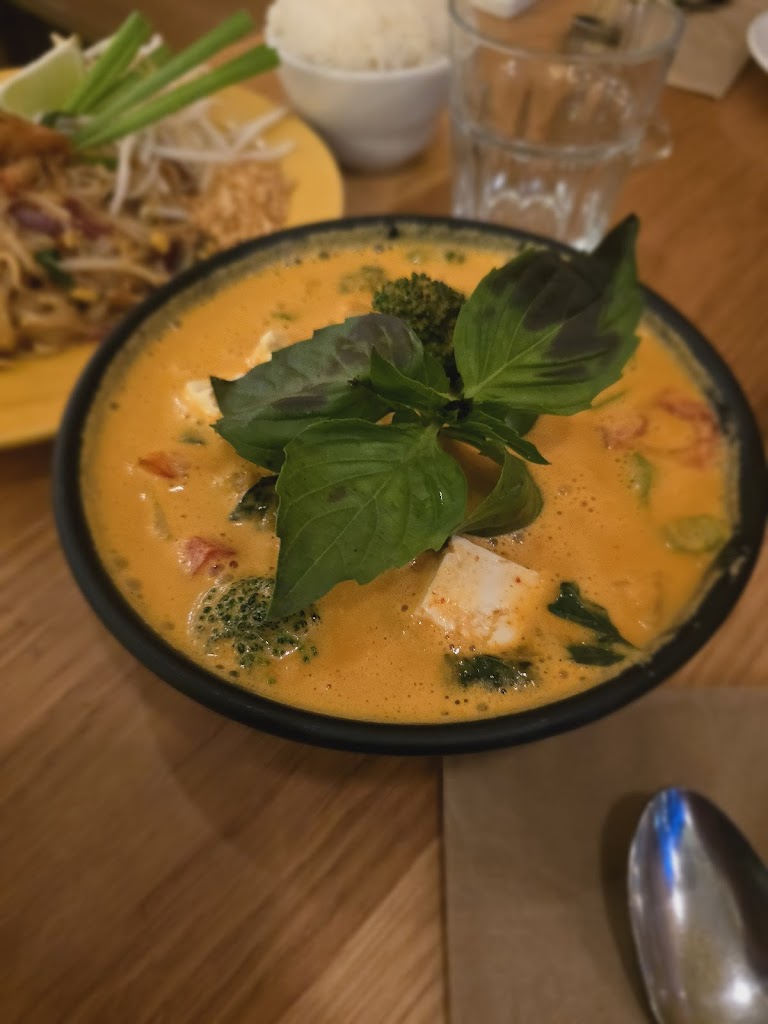Simple and elegant atmosphere. Staff are very freeing and food was next level. We were skeptical about vegan food initially, but were we wrong! The green curry was heavenly and the stir fried was next level. I was taken back on how delicious was the purple sticky rice with the mango. It was definitely a nice take on such a classic Thai desert. Highly recommend checking them out,