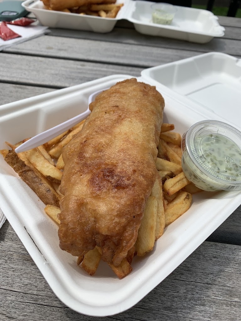 The fish has the right amount of batter, seasoning and crunch and the chips are very very fresh. Would highly recommend!
