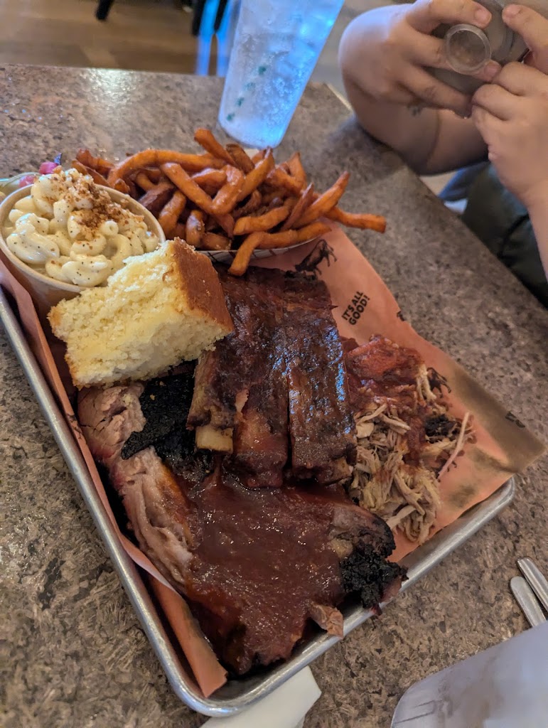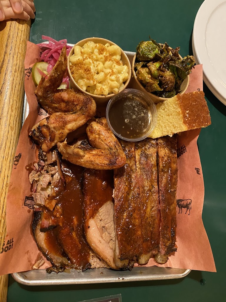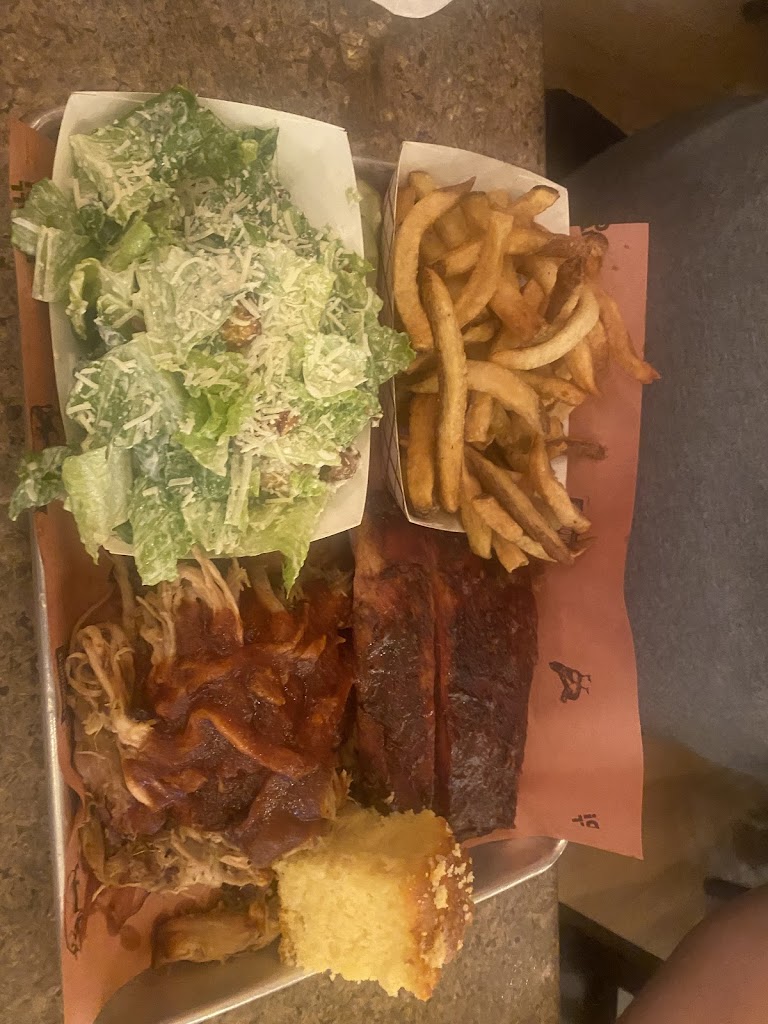 The fries are amazing. I just wasn t impressed with the meat. Everything just tasted the same and so much sugary sauce on everything. Even the sides (collards and Brussels) were sooo sweet. I would have preferred more tang and some contrast. Absolutely no heat to anything. I feel like I could have bought my own smoker for how much money I spent on my fam. The pickled onions were really good!