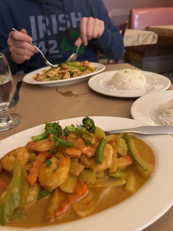 I ordered takeout on a Saturday evening at 8 p.m. and it was succulent really very good and lots of nice big pieces of chicken! Thai chicken curry WoW