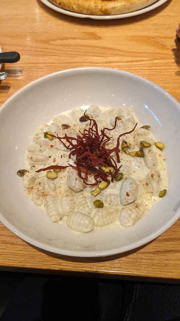 Fantastic pizza here with selections I haven't found elsewhere. Even the basic Margherita pizza is delicious and flavourful. And the arancini balls and bruchetta make for great starters. Decor is beautiful; nice mix of bistro and garden vibe. Our waitress Melissa was friendly and very helpful with recommendations. She recommended the Affogato with toasted almond Gelato that was the perfect dessert to end our meal. Definitely coming back here again!