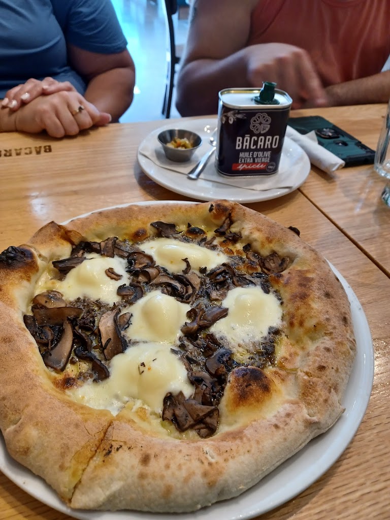 Excellent pizza cooked in a wood oven. Smiling and dynamic staff. Beautiful attention paid to the decor which transports us. The only downside was that it was very hot in the restaurant when we went.