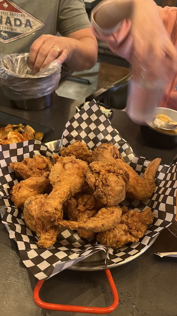 Outstanding service and atmosphere! Delicious and authentic fried chicken. We only tried the half and half fried chicken (and fries) and it was so yummy. Comes with picked radish and another side. Great beer and soju as well... We are so happy to have a Korean fried chicken place in our neighbourhood. Can t wait to go back!