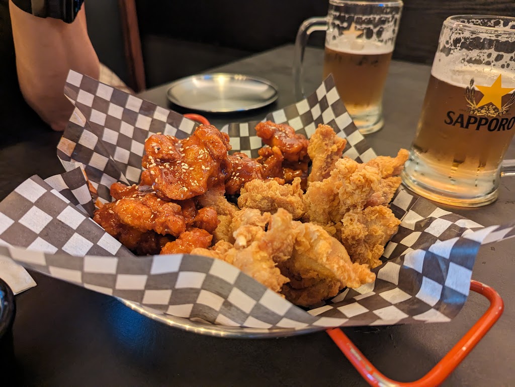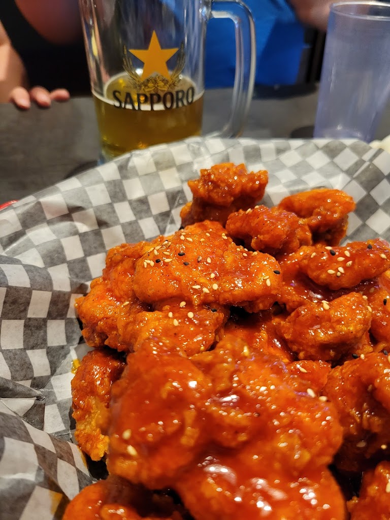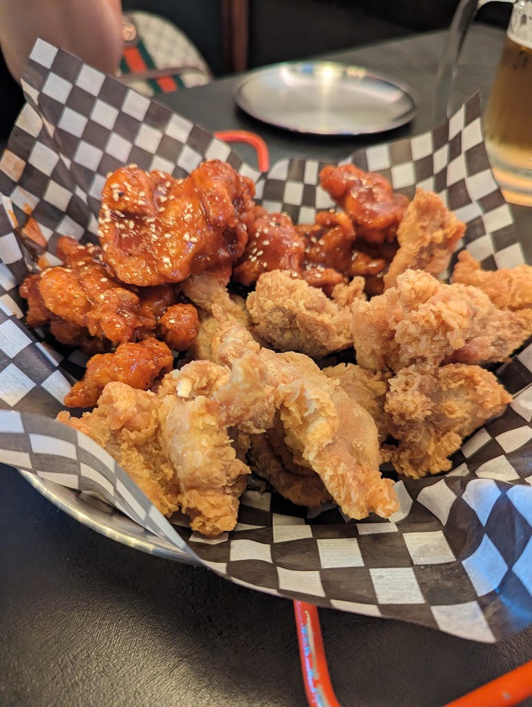 Yummy korean style fried chicken. Our favorite is the onion chicken. Really good with beer!