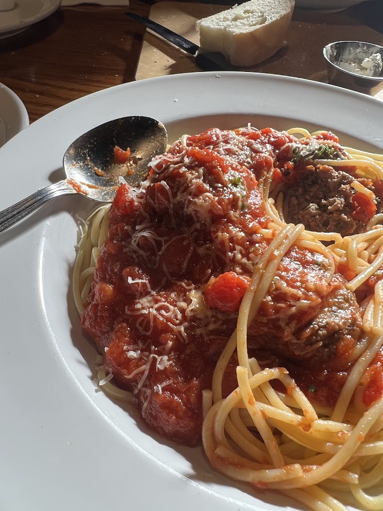 Me going into the Old Spaghetti Factory, I had a fantastic meal there. The spaghetti and meatballs were yummy!!! The serving were more and the rates everywhere where pocket friendly as well. It was a good experience, the service is pretty fast and friendly They are perfect for a family dinner or going out with your friends. Ill definitely be returning.