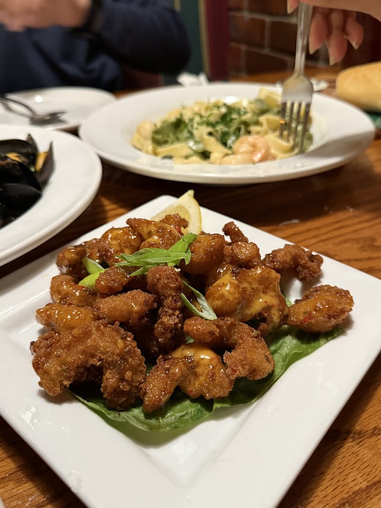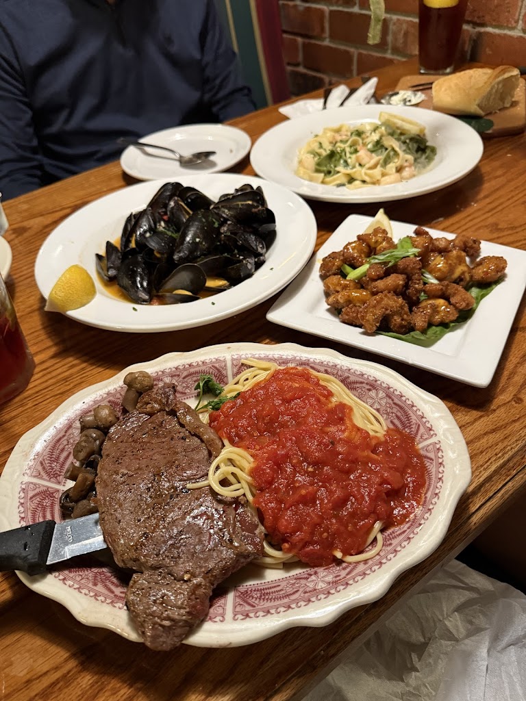 Holy moly!!! It was delicious, the options were ample and amazing. I highly recommend the green salad with house Italian dressing, or the spinach salad or well pretty much anything. The majority of the meals come with an option of soup, salad and bread sticks... and you get dessert! So much food, everything was cooked to perfection. Our server was wonderful and very attentive! The hostess definitely could have been friendlier.. but otherwise the best experience! Also, I definitely recommend over the olive garden.. Vegetarian options: There were tons of options! Dietary restrictions: I have a shellfish allergy and they were very accommodating. There were whole wheat options on the past and they were very receptive to alterations or needs on dishes! Kid-friendliness: The kids menu was extensive and they came with soup or salad, ice cream and a drink...for less than $10 (price ranged depending on what you ordered!) I highly recommend it!