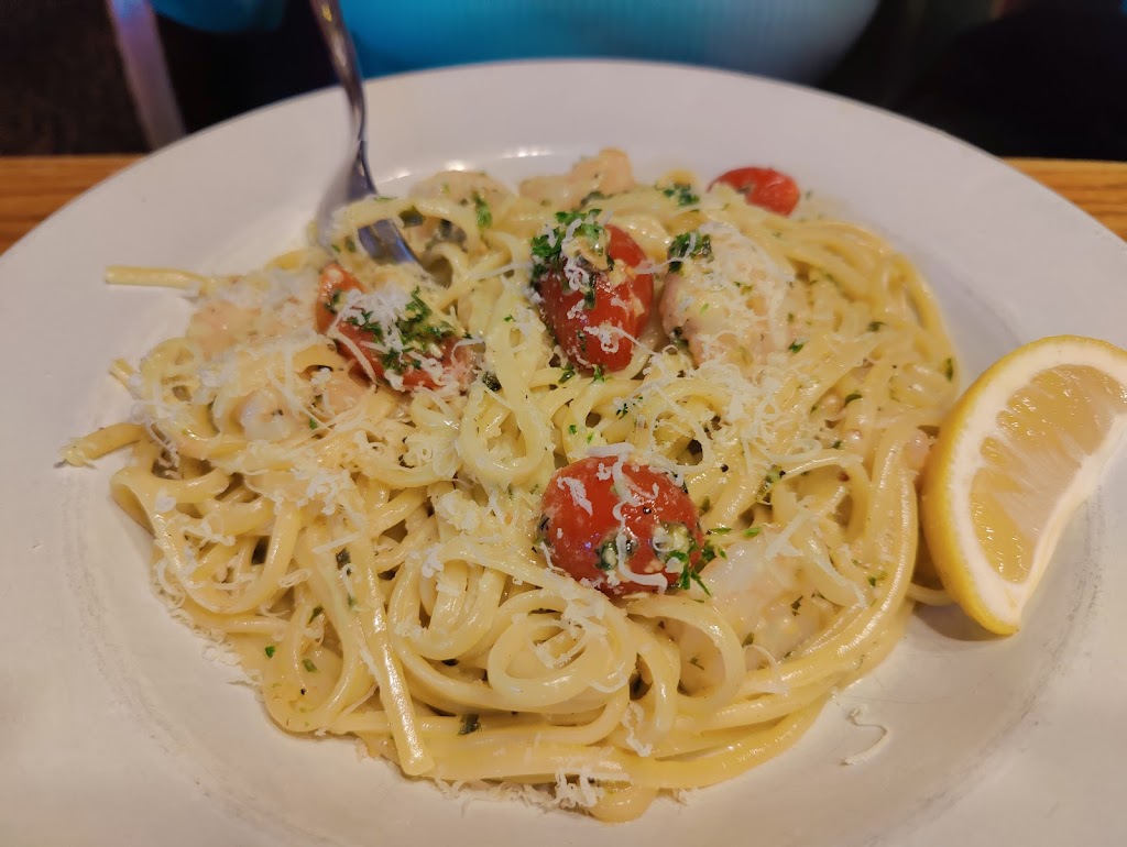 We had a great dinner and a great time here at the Old Spaghetti Factory. The service was amazing, the food was perfect and the place is huge and beautiful. In previous reviews people were complaining about the pesto saying it was bad, let me tell you, I almost even forgot to take a picture for this review because of how good and tasty this pasta was. Everything from the beginning to the end was perfect. Will come back with my family again.