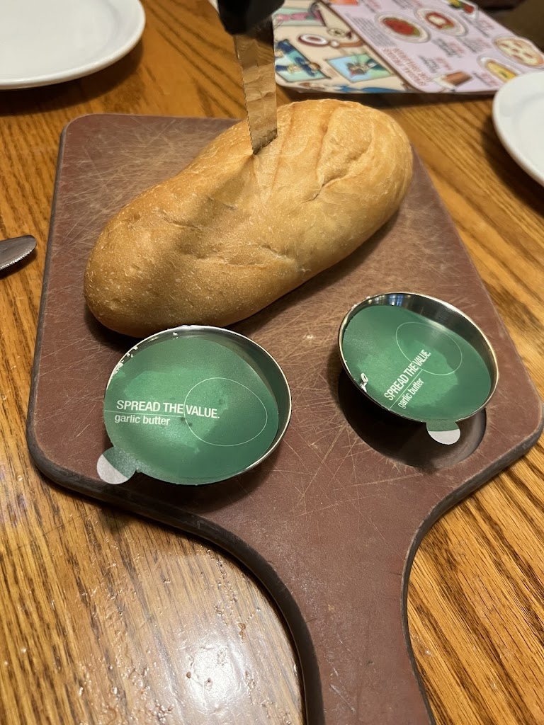 I love the Spaghetti Factory. They serve you sourdough bread with garlic butter before you even order, and you can keep adding for more. When you order an entre, the menu price includes soup or salad, then entree, then dessert. And hot tea or coffee is also included. The food is good, and the portions are large. I always take some home. Happy hour choices are great!!