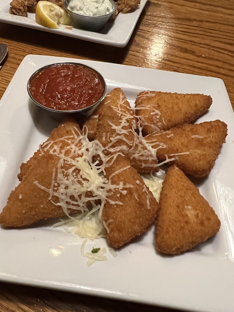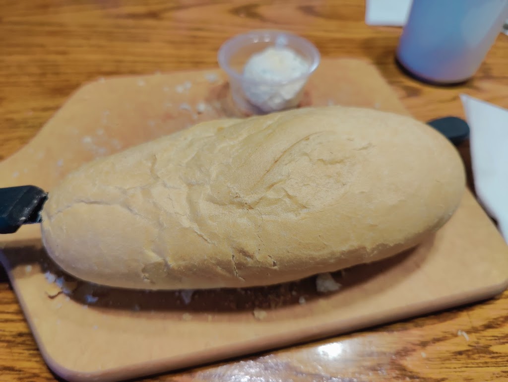 The six of us waited only a minute before being seated for lunch on Sunday. We soon had drinks and our server was asking about our mains. We chose Chicken Tenders, Linguine with Clams, Chicken Alfredo with Mushroom and Mascarpone Cheese Ravioli, Hot Roast Beef Dip au Jus, Soup and Salad, and French Onion Soup. While we waited, we snacked on a delicious loaf of bread. The meals all came together which is a nice touch. They were delicious. Three color Spumoni ice cream for dessert. Oh yeah, I ll be back.