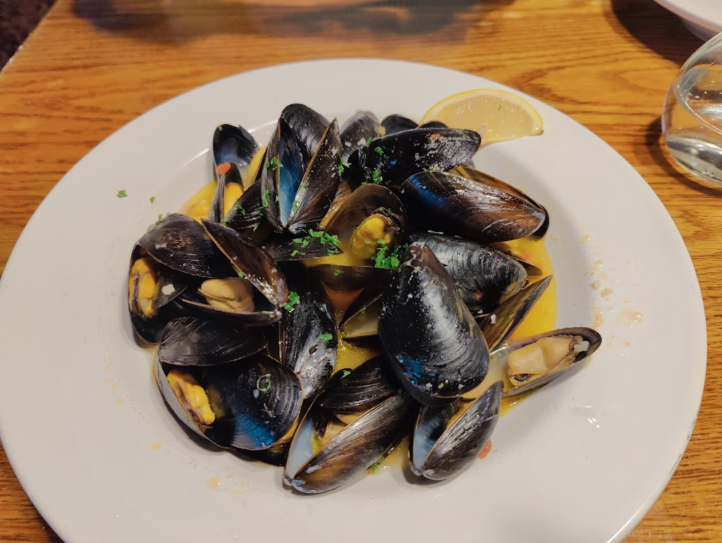 Just finished lunch. Our server Aidan was super friendly and gave us great service despite being very busy. He was/is an absolute rockstar! The steamed muscles were shockingly tasty. Definitely recommend! We also tried the French onion soup which was very tasty. Dietary restrictions: Celiac