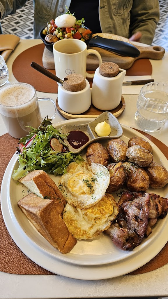 Adorable cafe! There are so many options of egg benny We loved Salmon and Bacon benny looks fancy and delicious Additionally, London fog was the best Ive ever had what a good taste!! we will definitely go back :) I wanted to come here because it was famous as soon as it opened, but they dont take reservations on weekends, so I recommend going early. You can find the waiting list by registering on the tablet PC inside the cafe. There were a lot of people, the atmosphere was nice, and the servers were friendly. The eggs Benedict we had was salmon and bacon, and the plating was so pretty haha. It was a dish I couldnt resist taking a picture of. The salmon was well-cooked, and the bacon was nice and crispy. However, on this day, maybe it was the hollandaise sauce, but it was just my plate. Maybe thats why it was so salty. But I still enjoyed it all! In particular, London Fog has become the #1 London Fog that my boyfriend and I chose while I was on tour. Ill visit again next time!