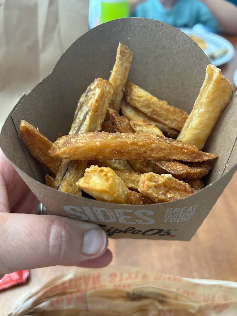 Normally we’re big fans of triple o’s, but today we were super disappointed by the quality of the fries. They looked, and tasted like, they had been sitting out and then thrown back in the fryer before they were served to us. Now I know to be looking at the whole order before driving away!