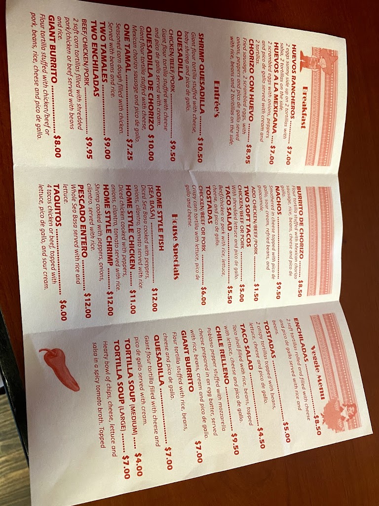 Absolutely awesome food. We each had the enchiladas, and they were stuffed full of meat. The rice and refried beans were super tasty and the server was friendly. The prices are completely reasonable, so I m not sure what others here are saying. It was $15 for a huge plate of food, which would have been fine even pre-pandemic. We will definitely be back. My only complaint is that there is no music or anything and the lighting is a little cold and harsh. Thanks for the great meal!