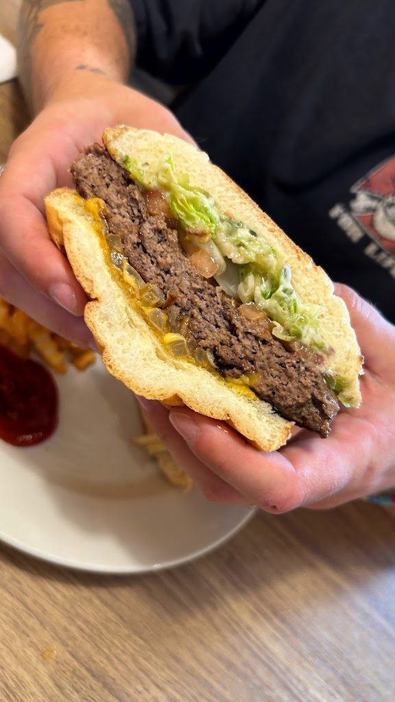 Good burger. Tastes like real beef. Nice crispy fries. My friend had an afternoon omlette that was described as really good. Second time here and Ill be back again