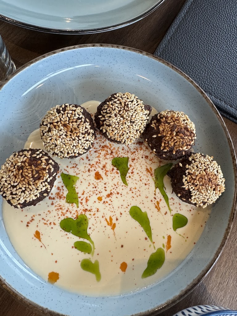 Everything was excellent! Perfect for vegetarians in a group, you can have a real feast by ordering several vegetable starters: garlic potatoes, hummus, fattouche, caramelized Brussels sprouts, fried cauliflower with tahini, cheese dumplings, falafels. However, it would be nice to have an easier option to make certain dishes vegan, for example by replacing the yogurt sauce with a tahini or hummus sauce.