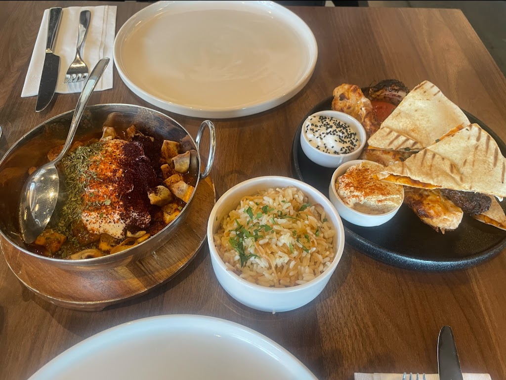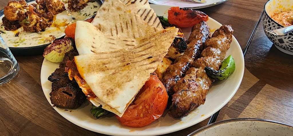 Wonderful food. We had the meat platter (Kebab, Shish Taouk & Lamb, comes with sides as well). It seems expensive at 86$ but it feeds 4 people as a full meal. The lamb was tender and nicely marinated, the beef Kebab was nicely seasoned and moist, the chicken as well. The pita had a wonderful lightly spicy pepper spread. The batata Harra were crispy potatoes heavily seasoned, very nice texture. We also had the mushroom dumplings with yogourt. They were crispy with a creamy sauce, everyone enjoyed them. 5/5 food, will definitely come back. The dining room is fairly small, but it is clean and well lit. The open kitchen is nice and orders are coming out quickly. There were quite a few take out and delivery orders being prepared too since we were at peak dinner time.