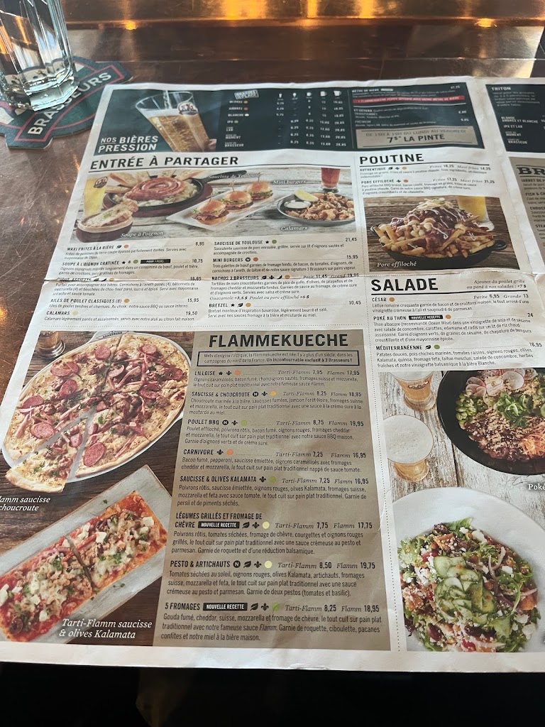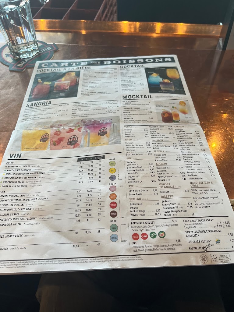 One of the rare restaurants where you can eat and drink without breaking the bank. Ok, I ate an ordinary poutine, but even with 2 strains (4 glasses of 12.5cl each - 2 pints in the end), it cost me around 30 piastres.