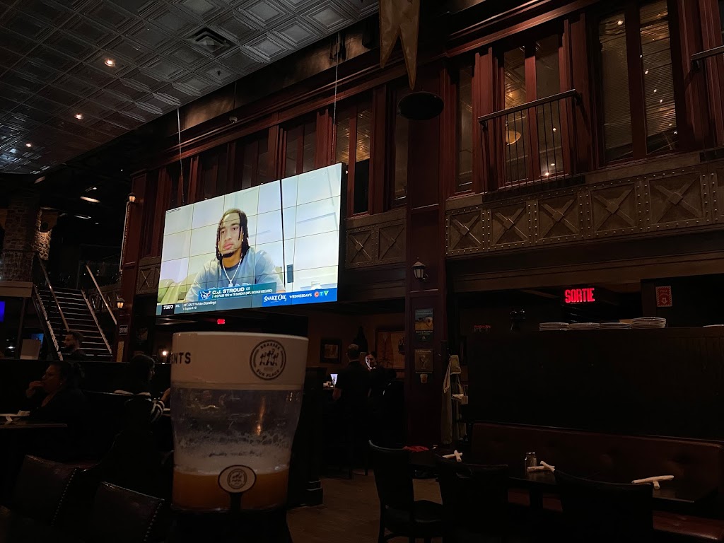 Good service. Nice atmosphere. Great place to watch the game and have a drink