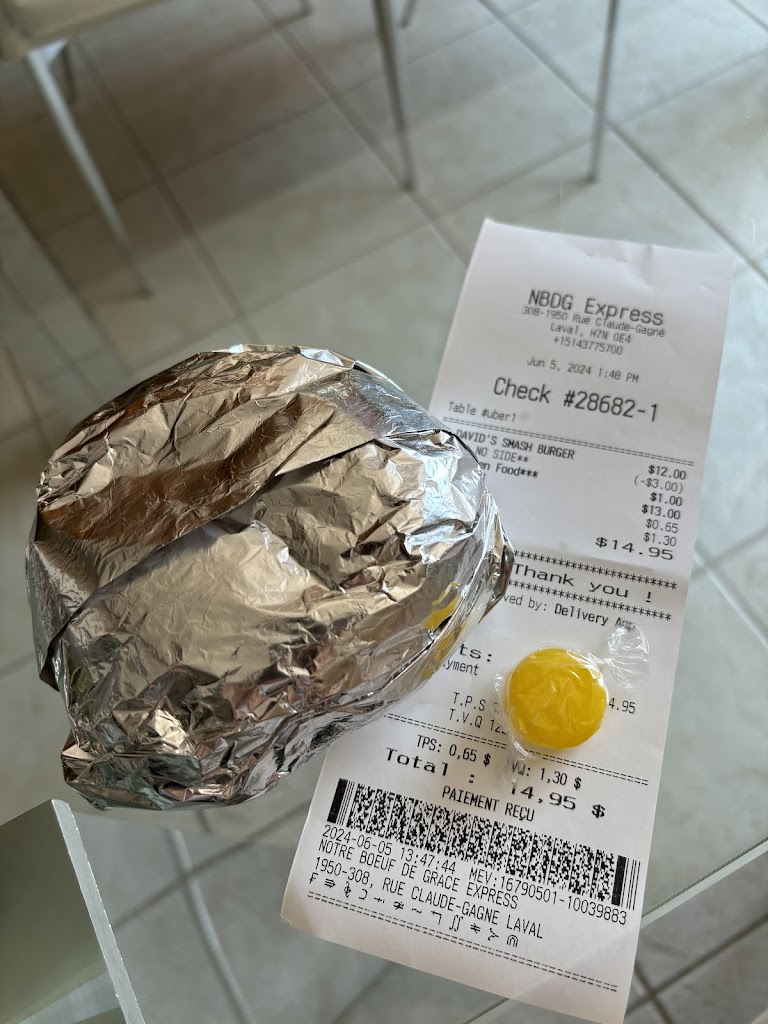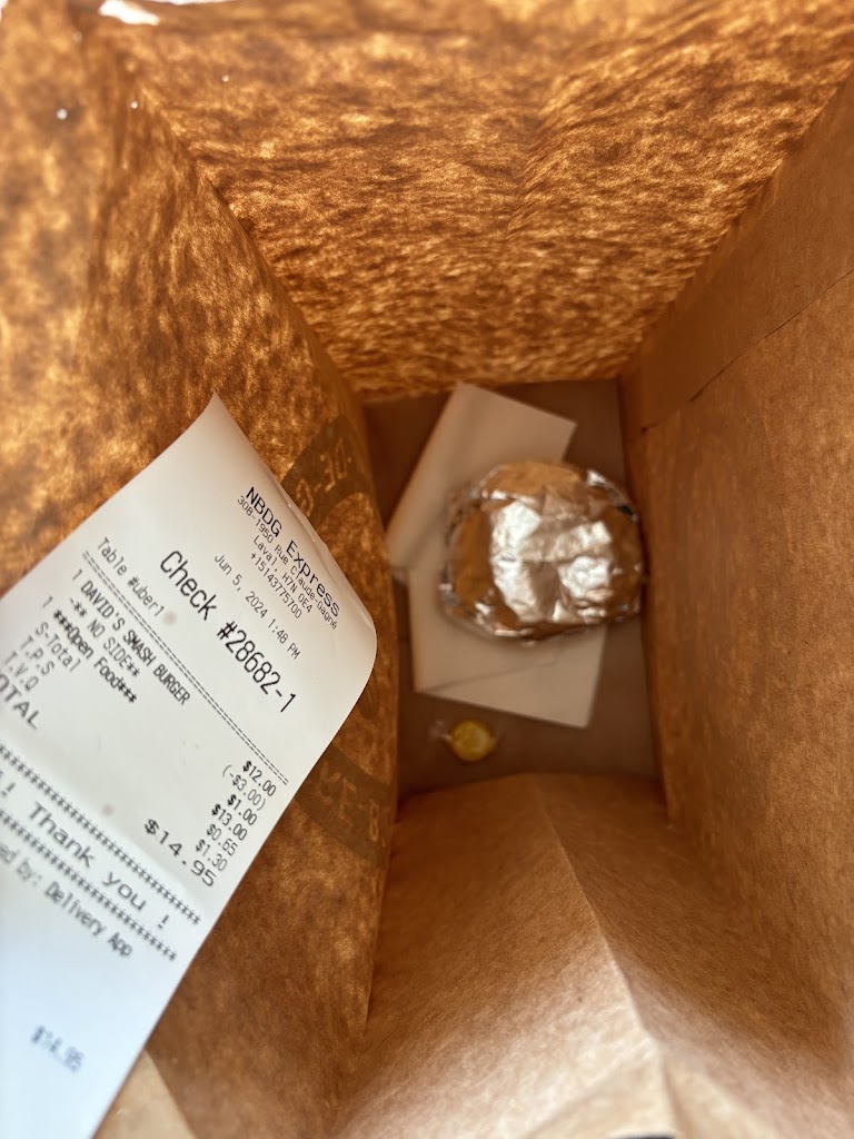 I ordered David’s smash burger with Uber Eat and there’s a BOGO (but one get one free) promotion. But it ended up with one burger and a cheap candy. Are you kidding me ??