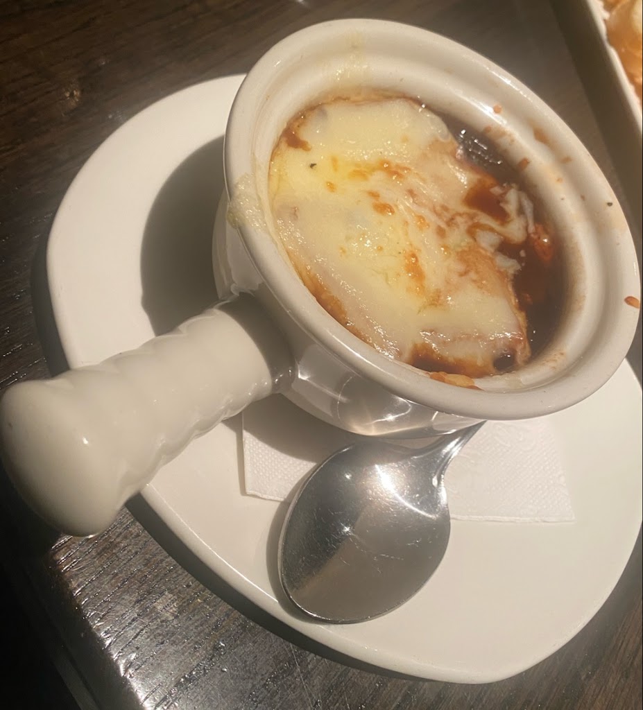 The French Onion Soup and Calamari are a must try ! The New York Striploin (medium rare) was delicious. We also had quick and fast service by our waiter !