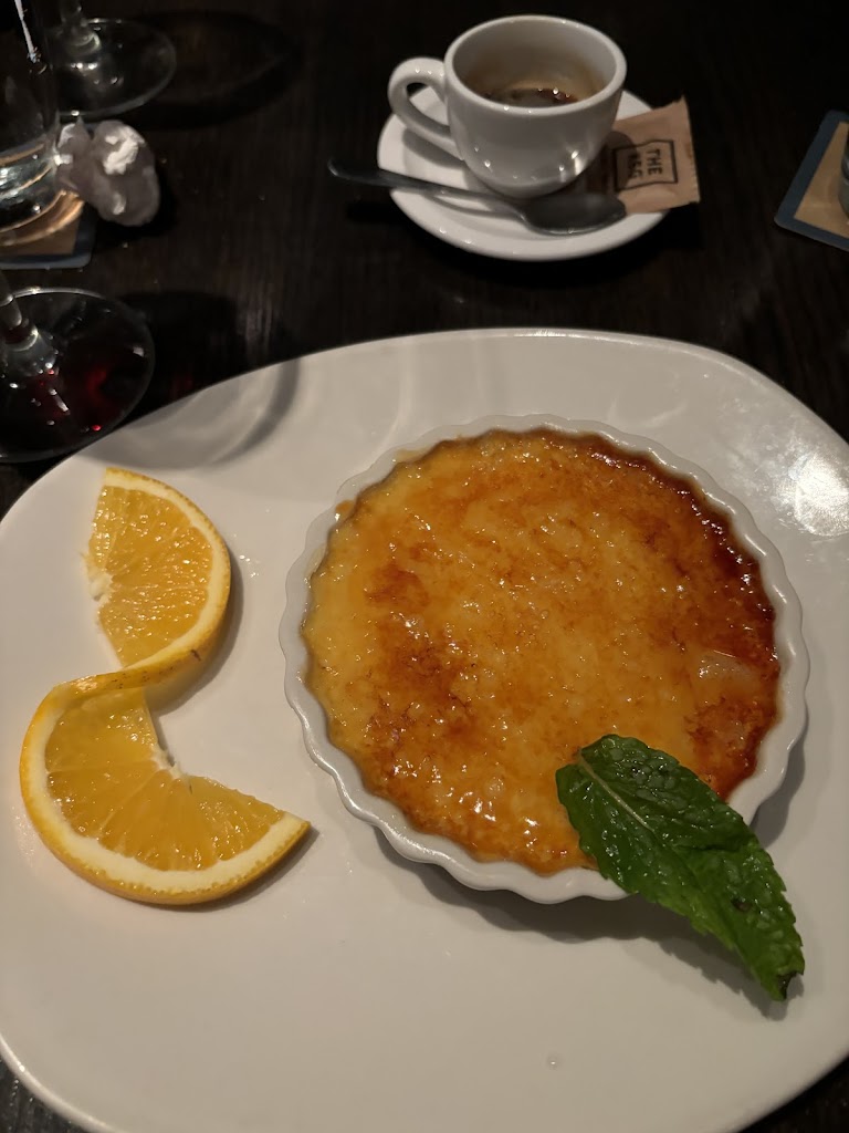 Arriving about 30 minutes of waiting, friendly and courteous service. Started with a Whiskey sour (which tasted like water, despite 2 ounces) Took scallops and cheese as a starter, 10 ounce filet mignon, very good by the way with sautéed (or rather burnt) vegetables, missing cooking and too burnt, finished with a crème brûlée which was good. To try at least once.
